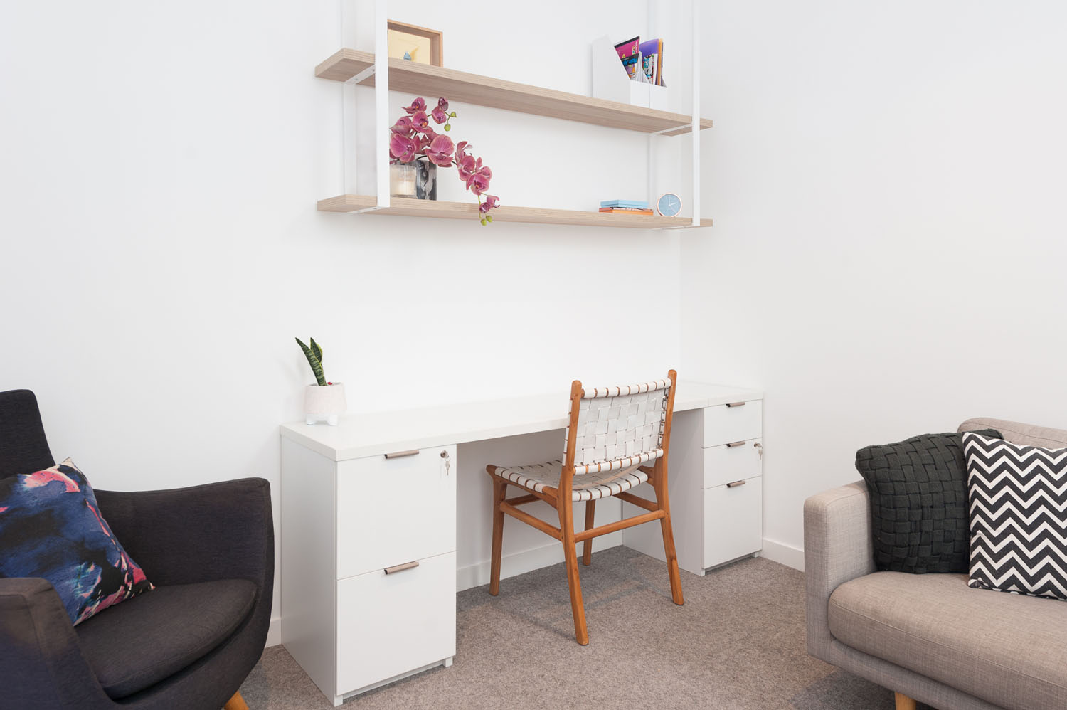 Our modular option is a collection of freestanding pieces that offers flexibility without the full custom design process. These modular products are in our standard sizes and are available exclusively in our range of 40+ laminate colours that we always keep in stock, allowing for a quicker turnaround and more affordable price point.