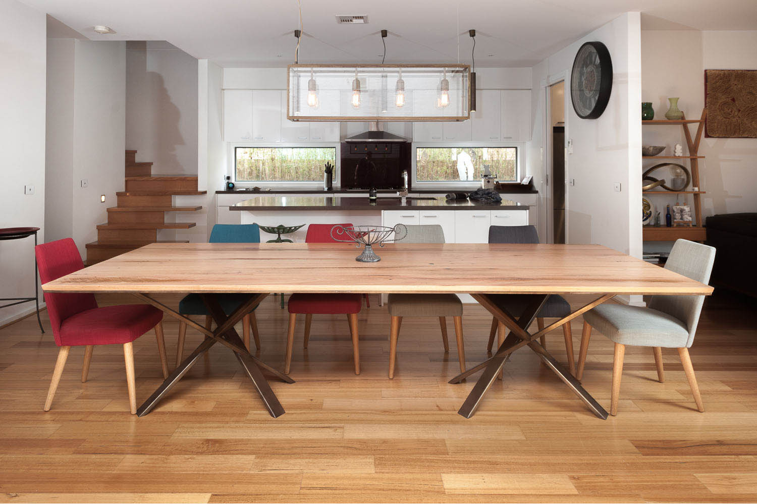 Spotted Gum Dining table with custom spotted gum legs on dining chairs